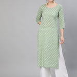Olive Green Ethnic Printed Straight Kurta With Three quarter Sleevs