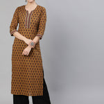 Mustrad Floral Printed Straight Kurta With Three Quarter Sleeves
