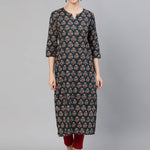 Teal Blue Printed Straight Kurta with Three Quarter Sleeves