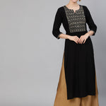 Black Embroidered Straight Kurta With Three Quarter Sleeves