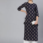 Navy Blue Ethnic Printed Straight Kurta With Three Quarter Sleeves