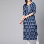 Blue Ethnic Printed Straight Kurta With Three Quarter Sleeves