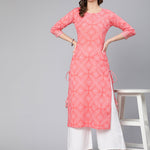 Pink Bandhani Printed Straight Kurta With Three Quarter Sleeves