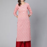 Pink Ethnic Printed Straight Kurta With Three Quarter Sleeves