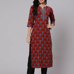 Maroon Ethnic Printed Straight Kurta With Three Quarter Sleeves