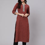 Maroon Ethnic Printed Straight Kurta With Three Quarter Sleeves