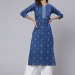 Blue Printed straight kurta with three quarter sleeves