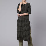 Black Geometric Printed Straight Kurta with Three Quarter Sleeves