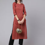 Maroon Ethnic Printed Straight Kurta with Three Quarter Sleeves
