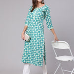 Blue Printed Straight kurta With Three Quarter Sleeves
