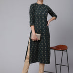 Green Printed Straight Kurta With Three Quarter Sleeves