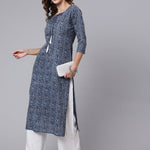 Blue Printed straight kurta with three quarter sleeves