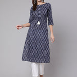 Navy Blue Printed Straight Kurta With Three Quarter Sleeves
