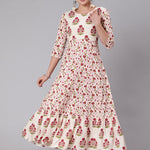Rayon Ankle Length Printed Flared 3/4 Sleeve Round Neck Kurta