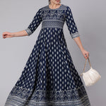 Cotton Full Length Printed Flared 3/4 Sleeve Round Neck Kurta