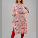 Printed Cotton Straight 3/4 Sleeves Calf Length Kurta