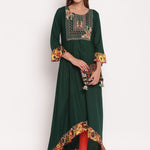 Embroidered Rayon High Low Kurta (Bottle Green)