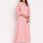 Floral Print Rayon A-Line Kurta (Pastel Pink)