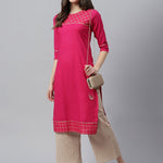 Women's Checkered Rayon Straight Kurta