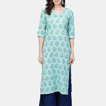 Pastel Blue Multi coloured Printed Straight Kurta with Sweet heart neck & 3/4 sleeves
