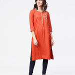 Peach Embroidery 3/4Th Sleeve Rayon Kurta