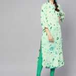 Green Tie & Dye Kurta With Mandarin Collar With Flared Sleeves