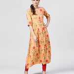 Peach Rayon Calf Length Kurta With Round Neck Front Placket
