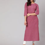 Mauve Printed Straight kurta With Three Quarter Sleeves