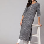 Grey Printed Straight kurta With Three Quarter Sleeves