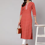 Rust Ethic Printed Straight Kurta With Three Quarter Sleeves