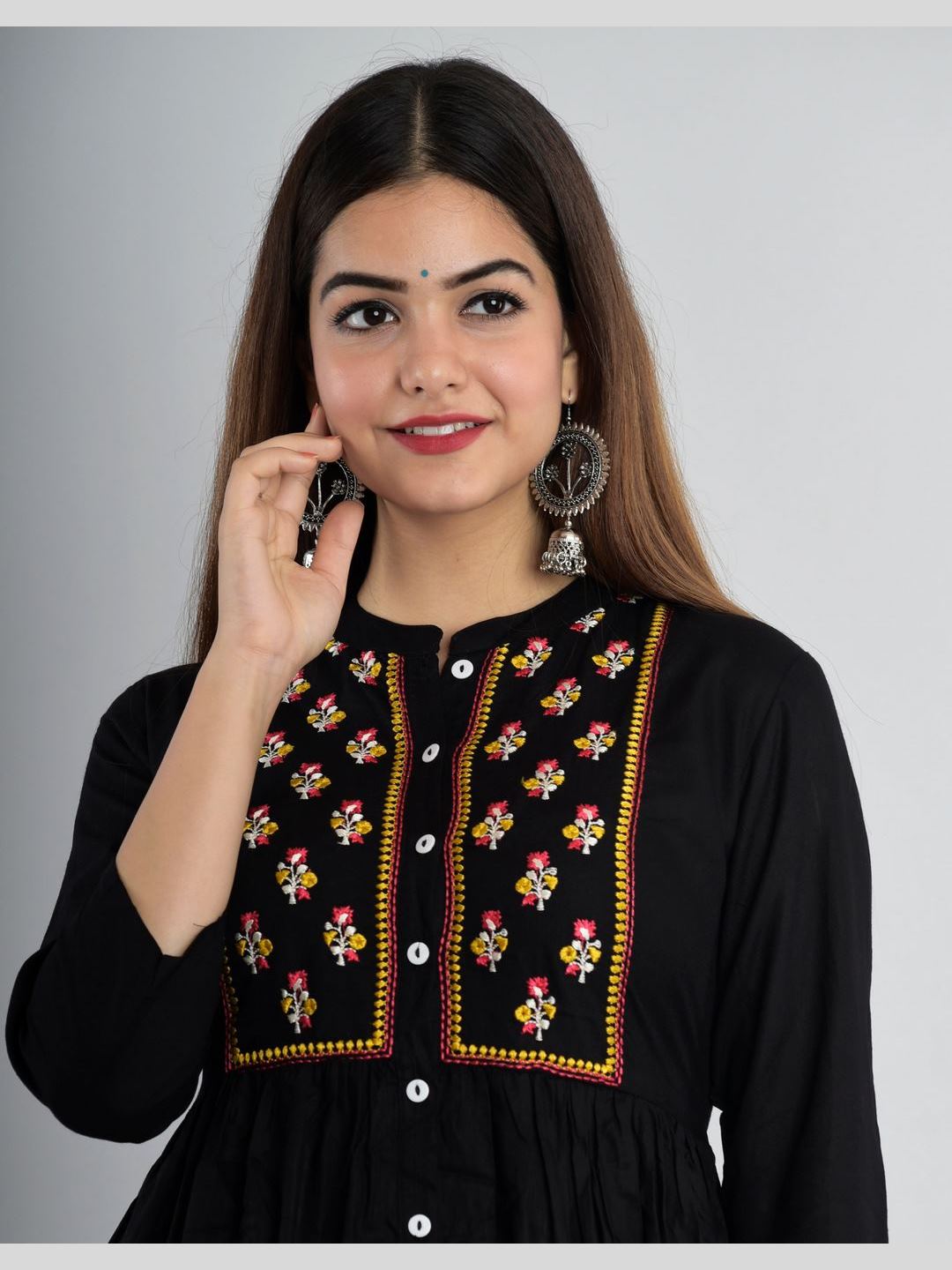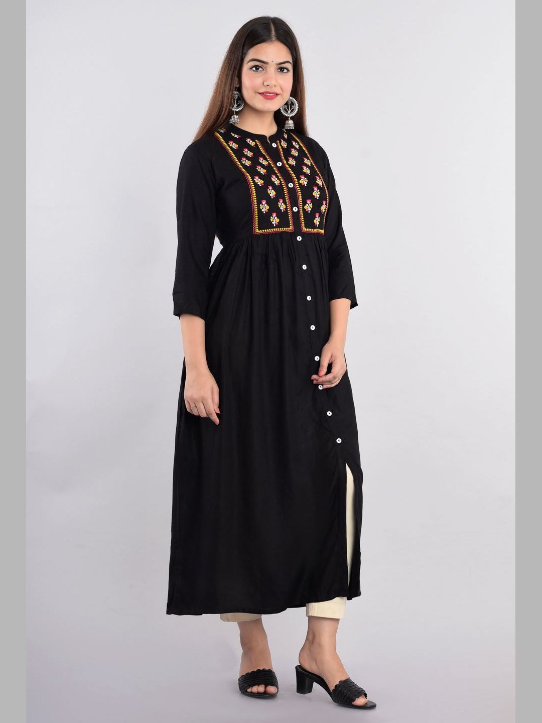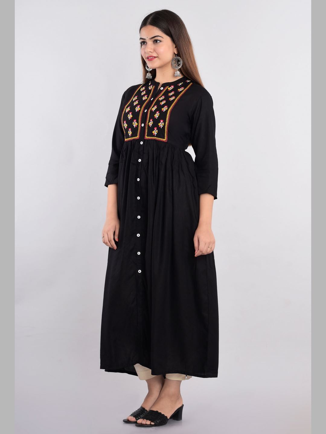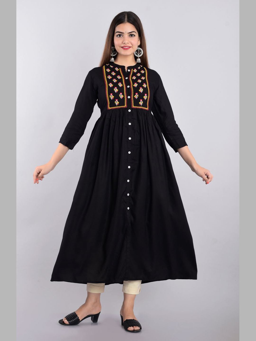 Women Rayon Embroidered Flared Kurta