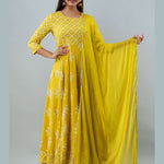 Printed Rayon Round Neck 3/4 Sleeve Flared Ankle Kurta and Dupatta Set