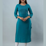 Embroidered Rayon Round Neck 3/4 Sleeve Straight Calf Kurta