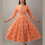Cotton Printed Round Neck 3/4 Sleeve Flared Ankle Length Kurta