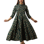 Cotton Printed Mandarin Neck 3/4 Sleeve Flared Ankle Length Kurta