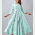 Cotton Printed Round Neck 3/4 Sleeve Flared Ankle Length Kurta