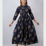 Cotton Printed Mandarin Neck 3/4 Sleeve Flared Ankle Length Kurta