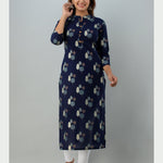Cotton Printed Mandarin Neck 3/4 Sleeve Straight Calf Length Kurta
