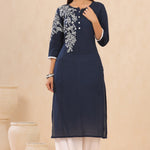 Navyblue Modal Dobby Embroidered Straight Kurta