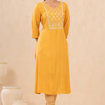 Mustard Rayon Crepe Embroidered Straight Kurta
