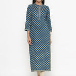 Closure - Embroidery And Buttons On Yoke, Side Slit, Embellished With Sequin On Yoke