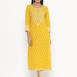 Rayon Block Print Straight Kurta