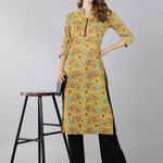 Cotton Printed Straight Kurta (Mustard)