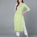 Cotton Leheriya Print Straight Kurta (Light Green)