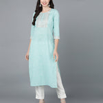 Cotton Leheriya Print Straight Kurta (Light Blue)