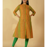 Cotton Stripe Print A-Line Kurta (Orange)