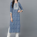 Cotton Lehriya Print Straight Kurta (Navy Blue)