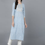 Cotton Lehriya Print Straight Kurta (Light Blue)