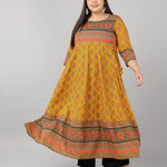 Cotton Printed Anarkali Kurta (Mustard)