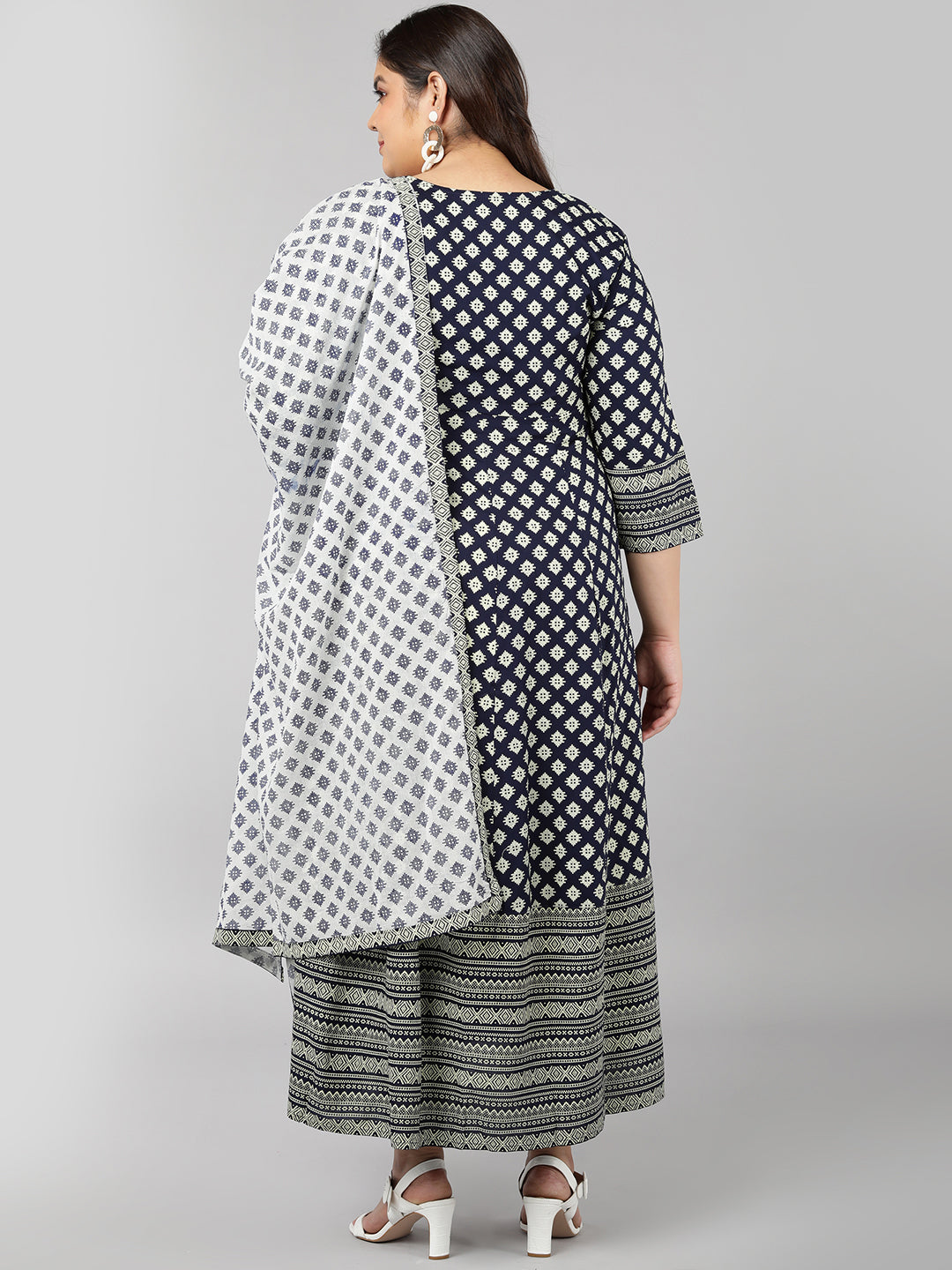 Rayon Printed Regular Kurta Set (Navy)